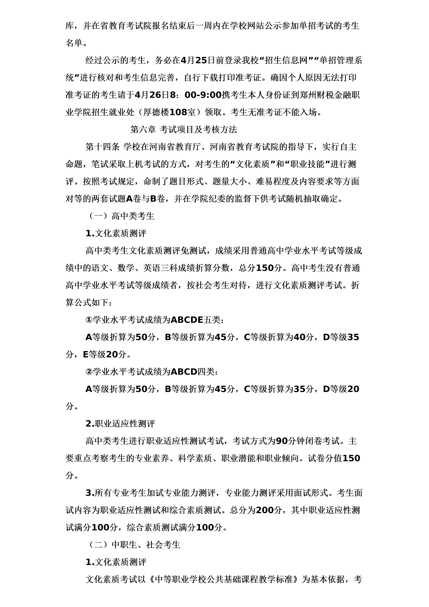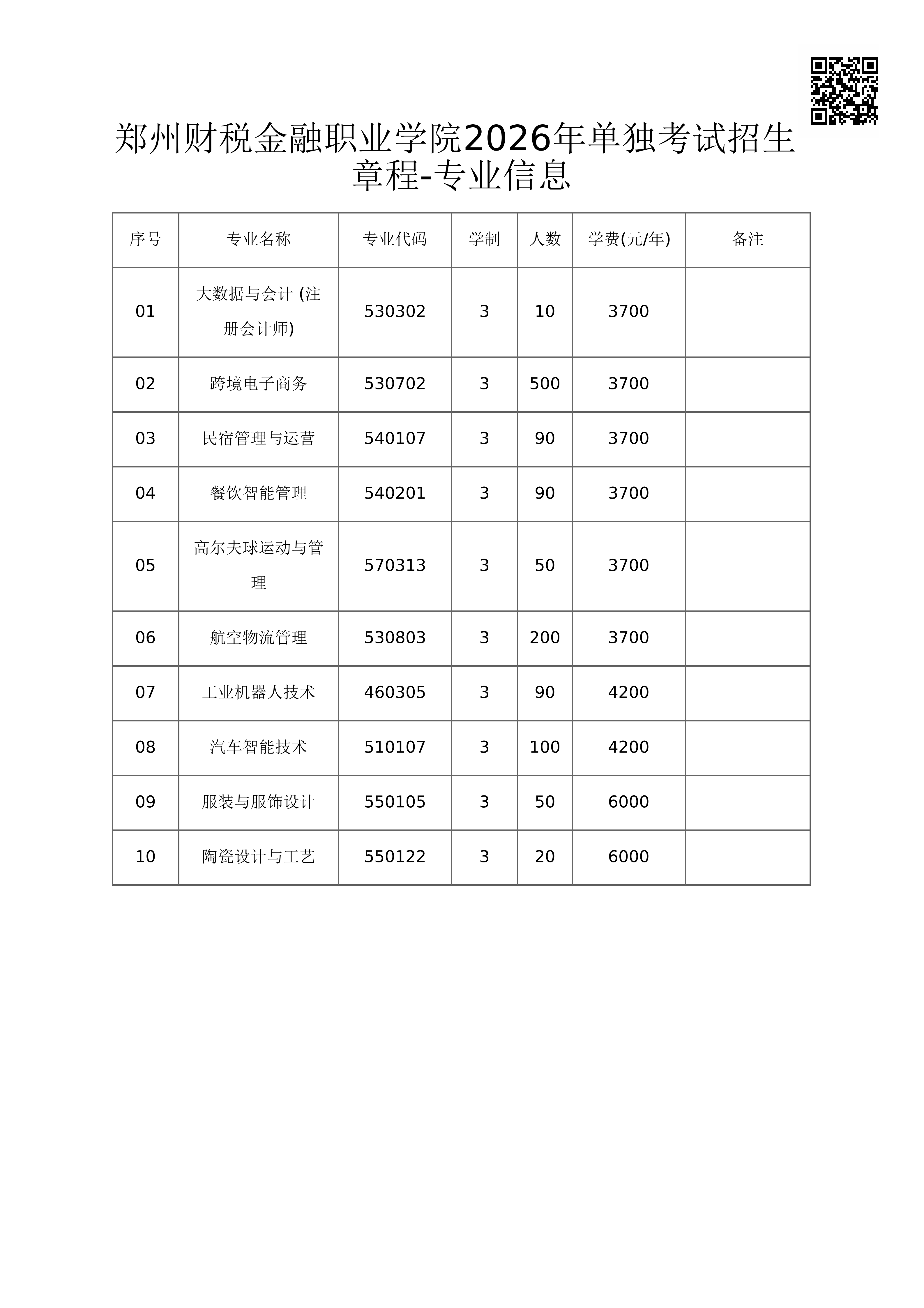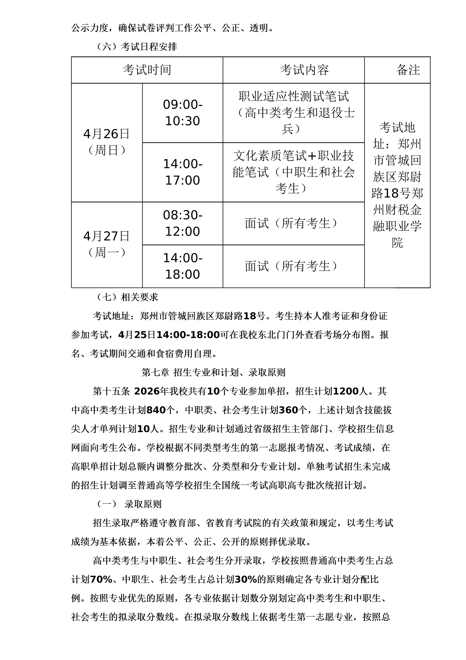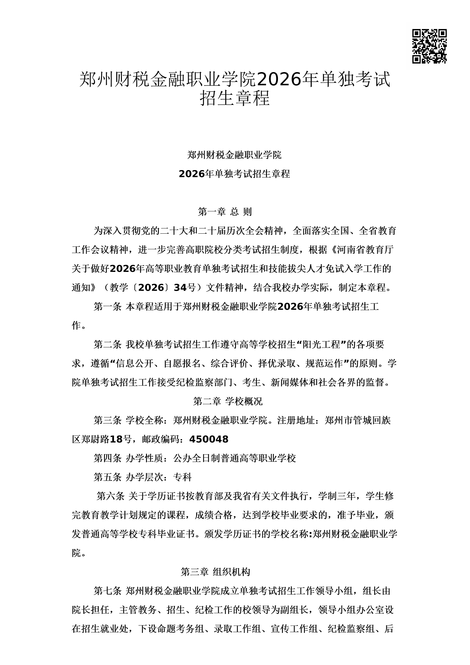 郑州财税金融职业学院2026年单招章程